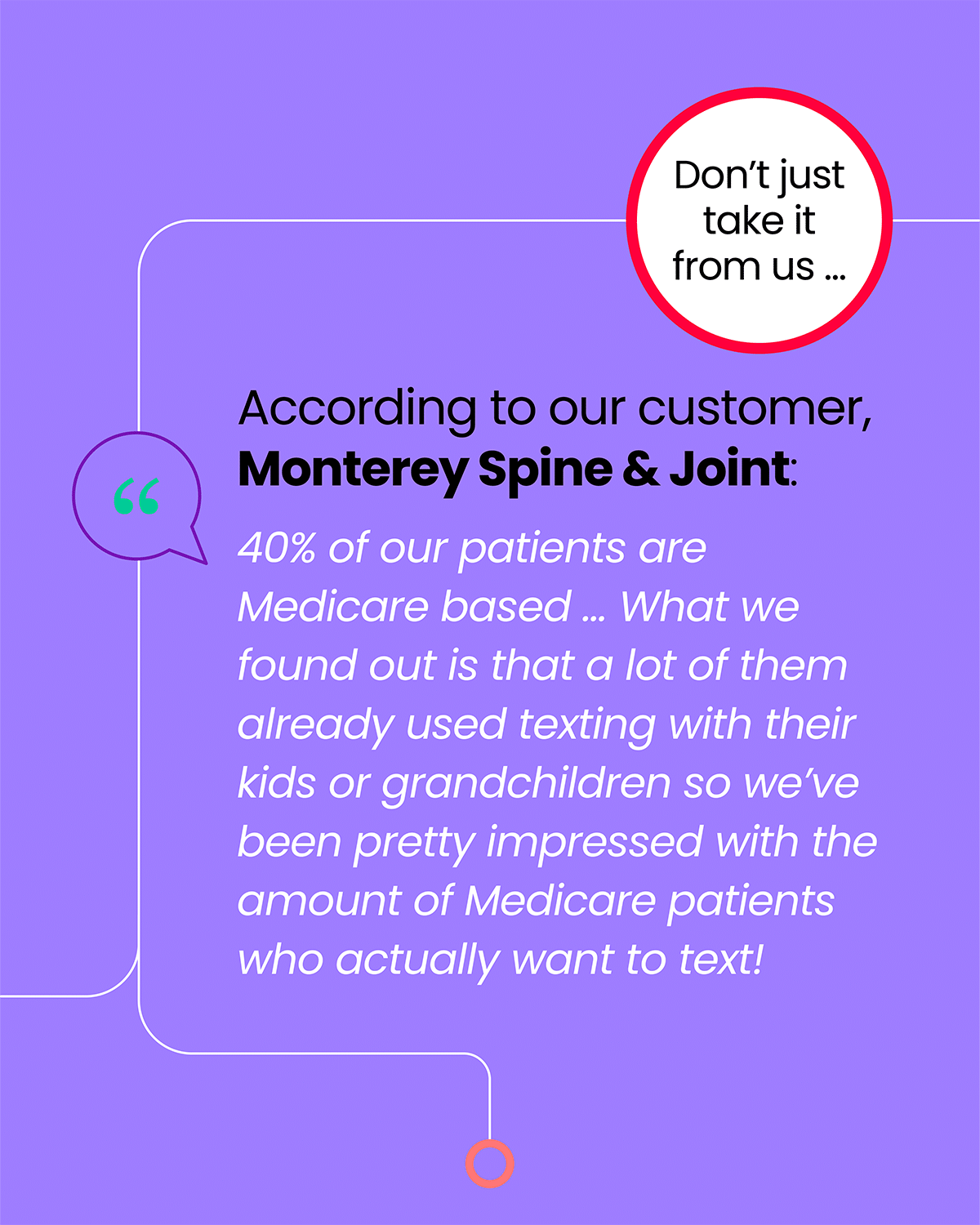 “40% of our patients are Medicare based…What we found is that a lot of them already used texting with their kids or grandchildren so we’ve been pretty impressed with the amount of Medicare patients who actually want to text!”
