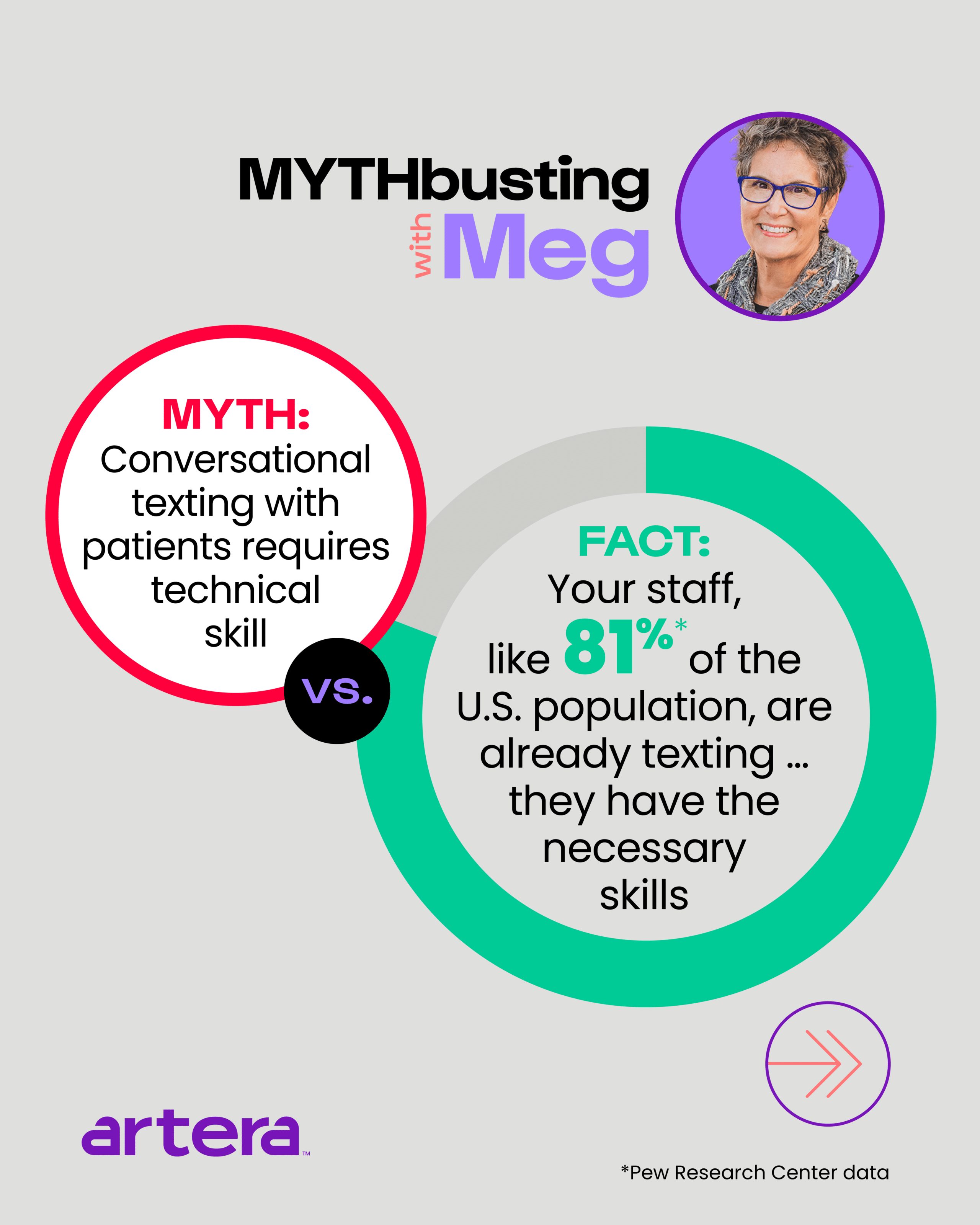 Meg Aranow, SVP and Platform Evangelist at Artera, debunks these common patient communication myths and brings forward the facts at the intersection of tech and healthcare to help providers deploy effective strategies to improve their patient communications. Read on for more….
