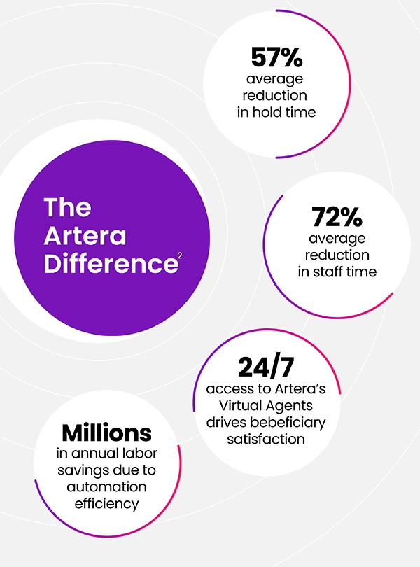 Our customizable solutions include multiple virtual agent options (voice & text) that are available 24/7 to handle most beneficiary inquiries – thereby reducing manual staff workload and driving efficiency.