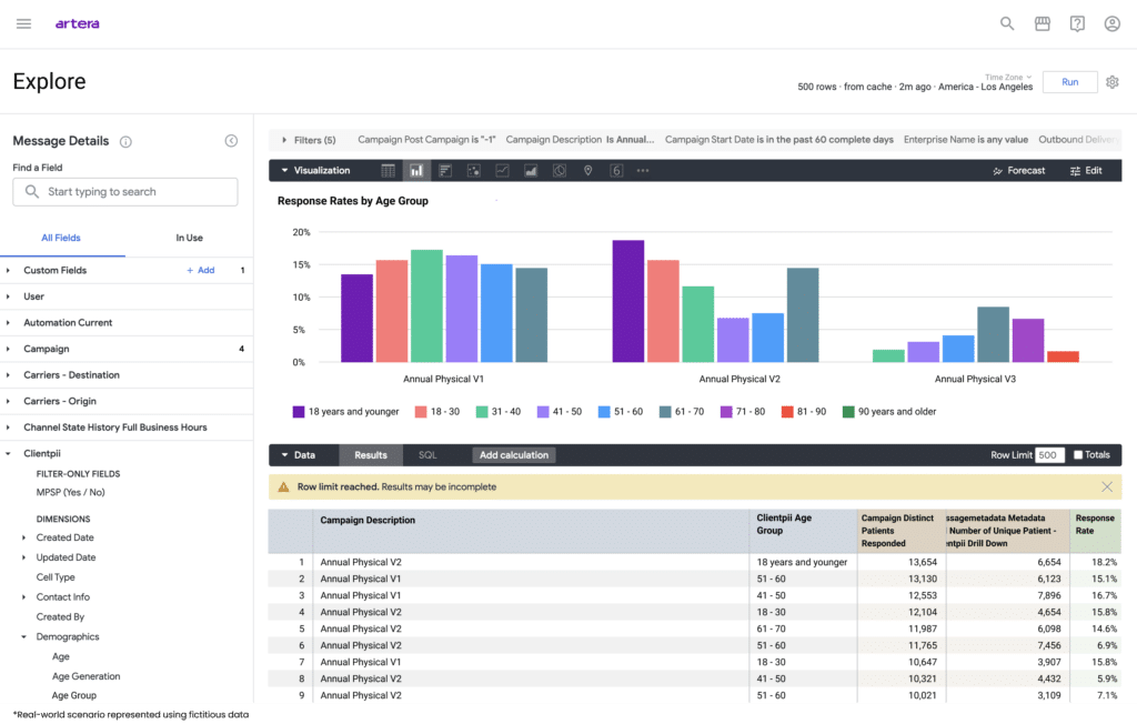 With Artera, healthcare organizations who use our patient communications platform receive advanced analytics that elevate reporting capabilities, power unique insights, and improve data value and transparency. Specifically, Artera Analytics Plus with newly added Self Service functionality empowers users with the ability to independently explore, understand, and develop unique insights from their patient engagement data.
