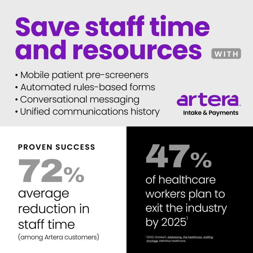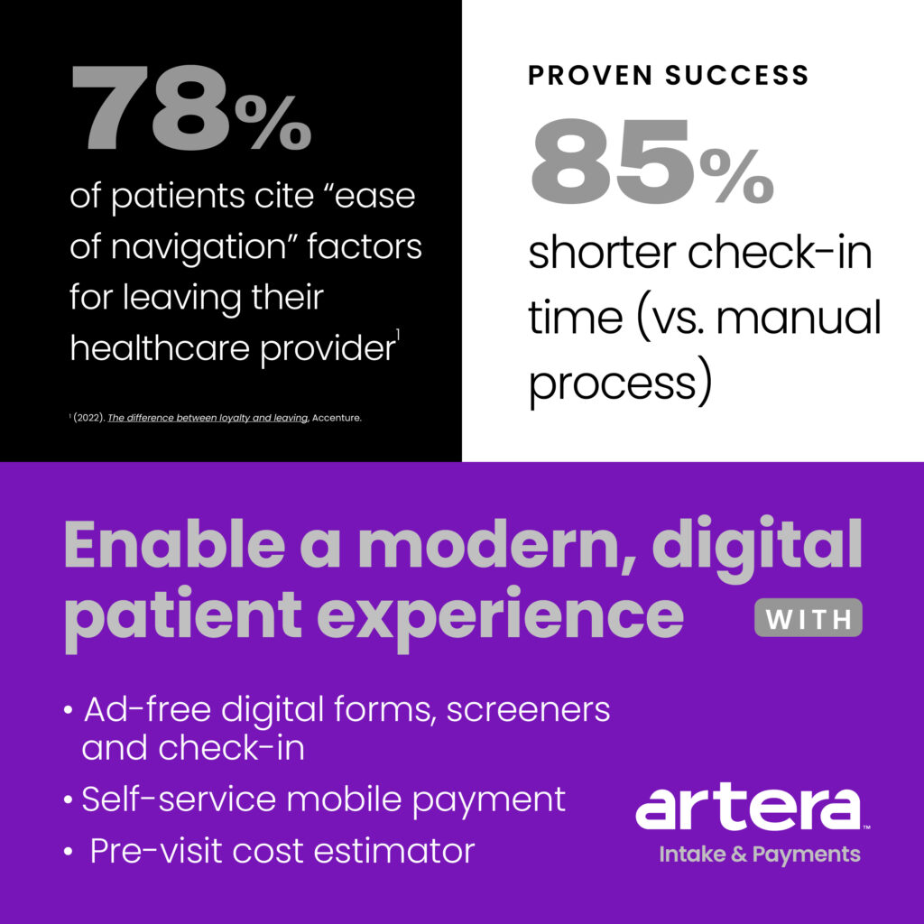 Join us in revolutionizing the patient intake process, ensuring a brighter, more efficient and patient-centric future for healthcare. For more information on how Artera’s Intake & Payments solution can transform your healthcare organization, click here or download our infographic, here.