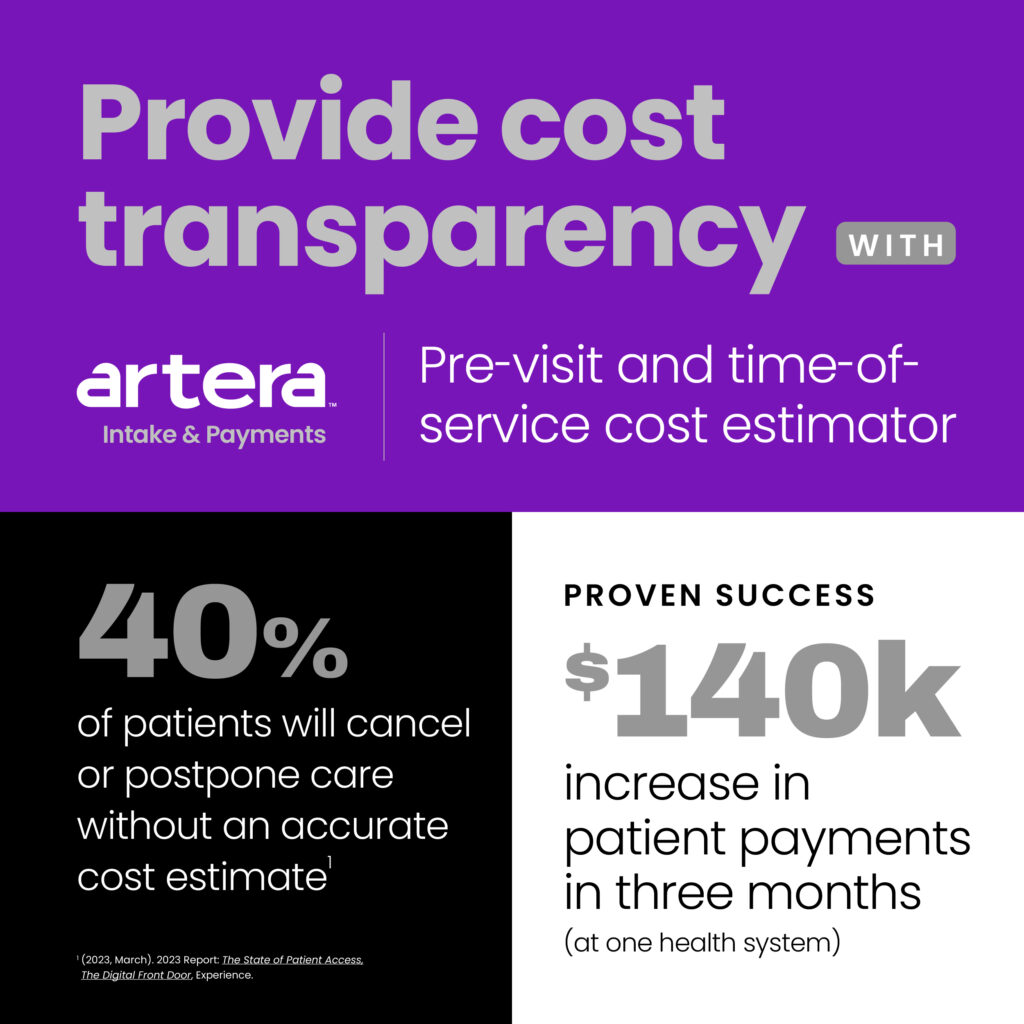 Join us in revolutionizing the patient intake process, ensuring a brighter, more efficient and patient-centric future for healthcare. For more information on how Artera’s Intake & Payments solution can transform your healthcare organization, click here or download our infographic, here.